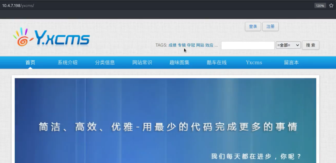 进去后发现yxcms 考虑它是不是还搭建了一个yxcms