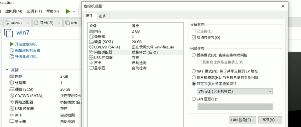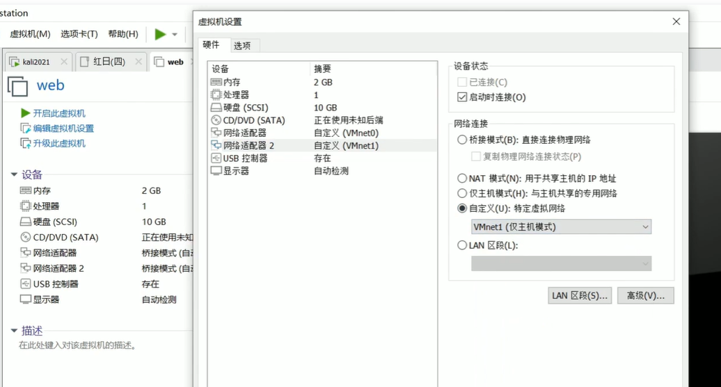 这里是攻击机打内网 而内网的主机的网卡是仅主机模式 不能连接外面 而外面可以连接里面