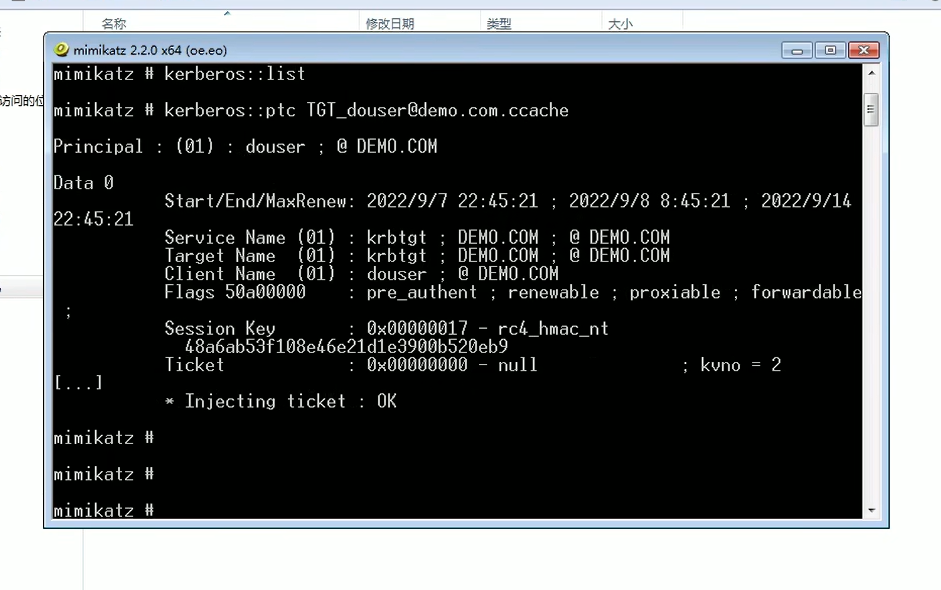 把我们刚刚生成的缓存用ptc导入(高权限票据注入内存)